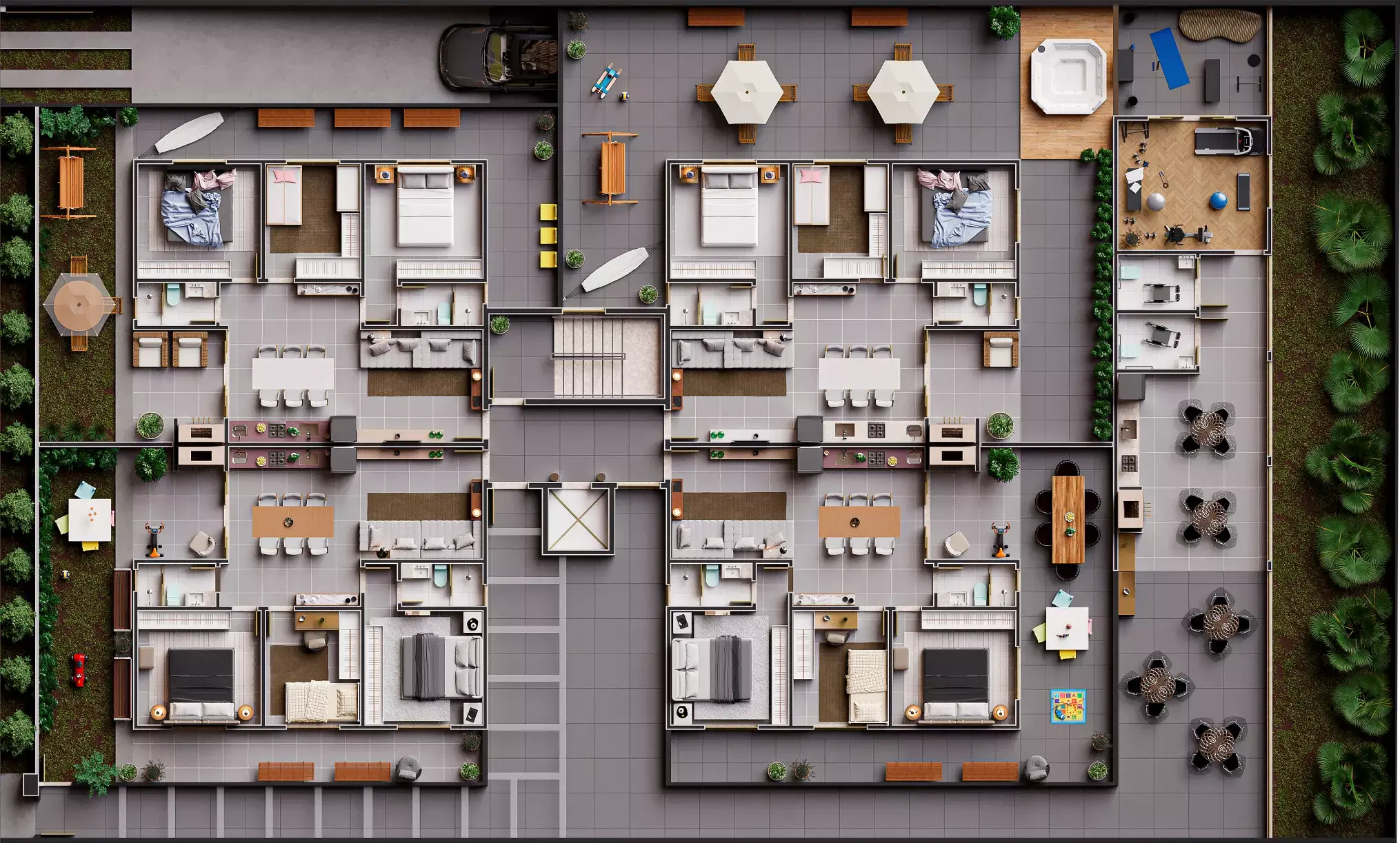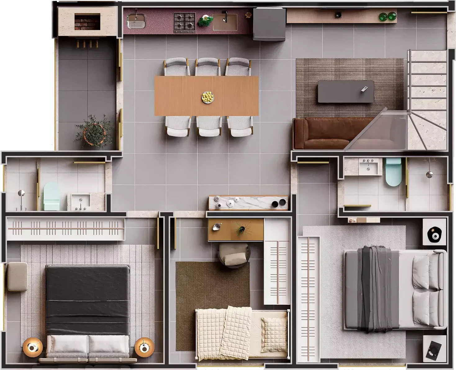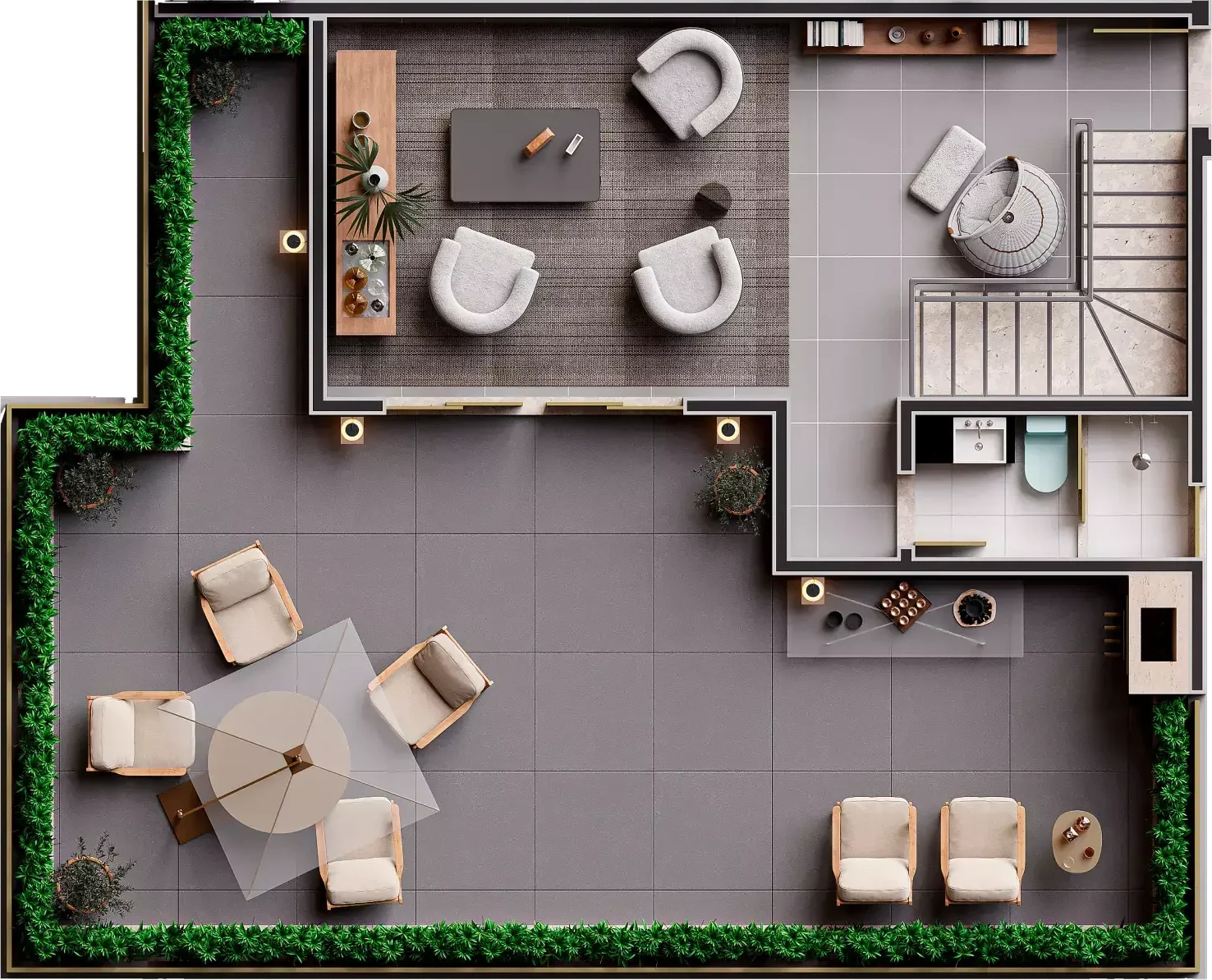 Fachada totalmente revestida com Porcelanato Portobello, garantindo sofisticação estética, alta durabilidade e resistência às intempéries, maior conforto térmico, além de baixa manutenção e valorização do imóvel.